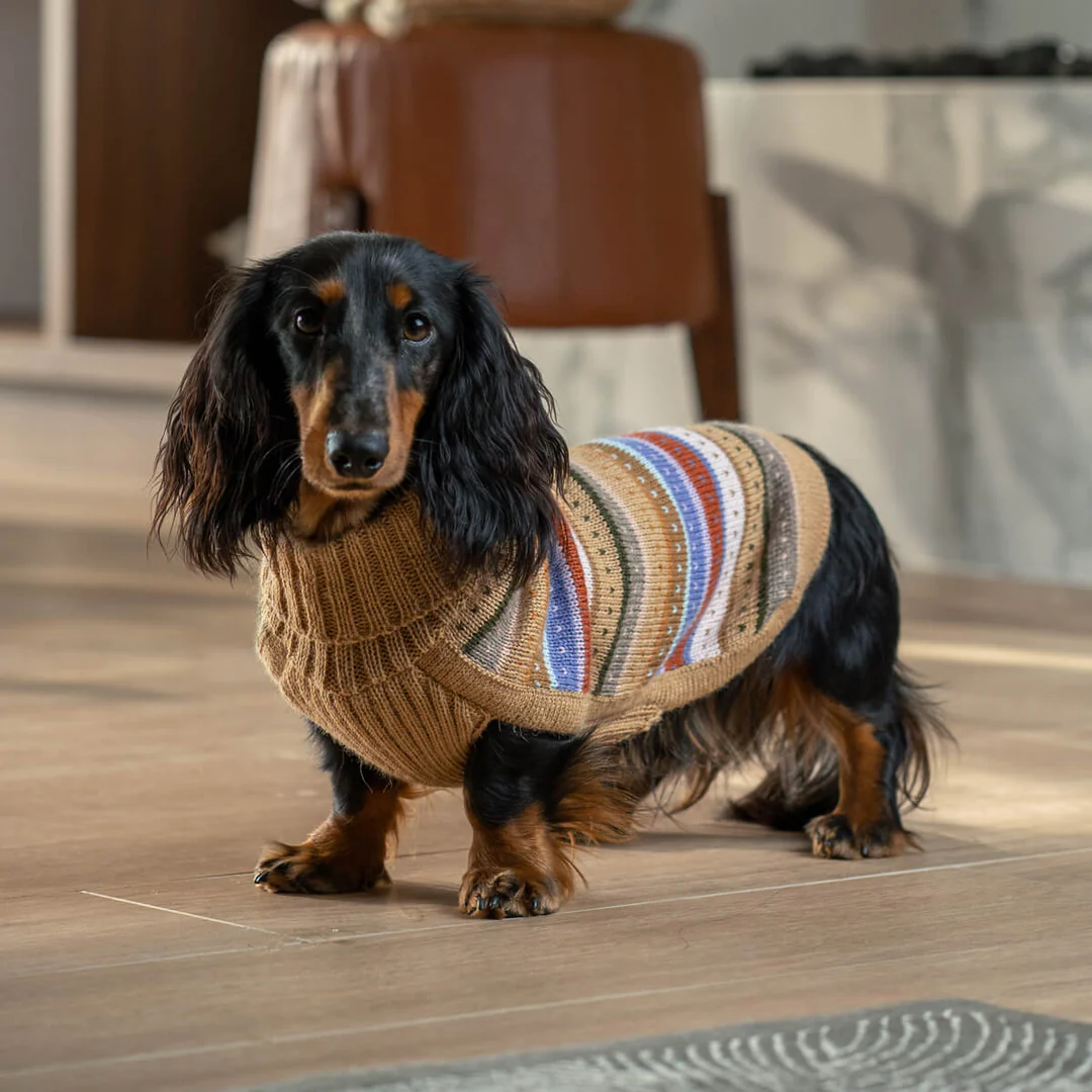 Der Alpakapullover Hello Autumn vereint edles Design mit funktionaler Wärme und sorgt dafür, dass dein Hund stilvoll und wohlig warm durch die kalte Jahreszeit spaziert.