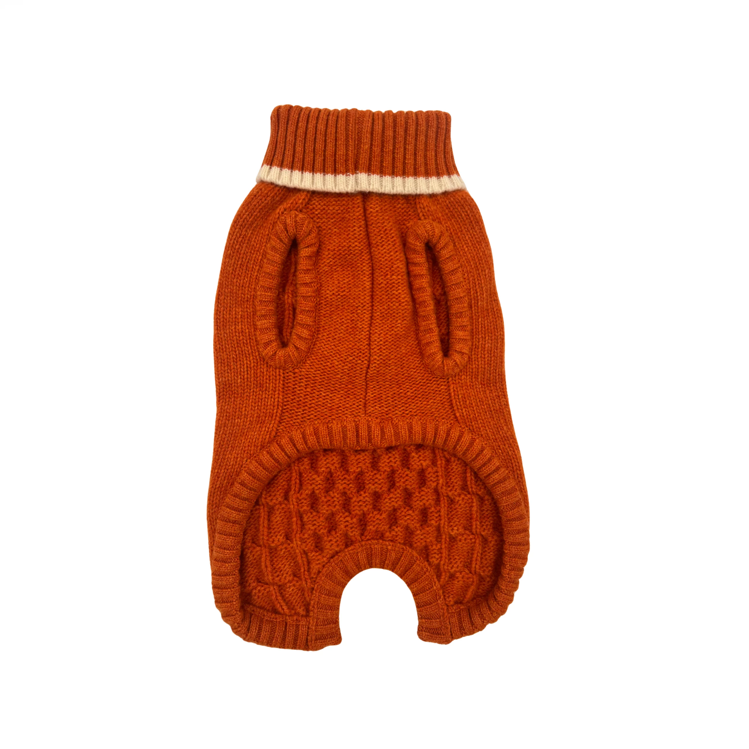 Der Brook & Bark Hundepullover Stavos Orange besteht aus 100 % italienischer Naturwolle und wird von Hand in Portugal gestrickt. Durch das natürliche Material wärmt er zuverlässig, reguliert die Körpertemperatur und bleibt zugleich atmungsaktiv. So fühlt sich der Hund bei kühlen Temperaturen wohl, ohne zu überhitzen. Das robuste Strickmuster macht den Pullover langlebig und sorgt für hohen Tragekomfort.
