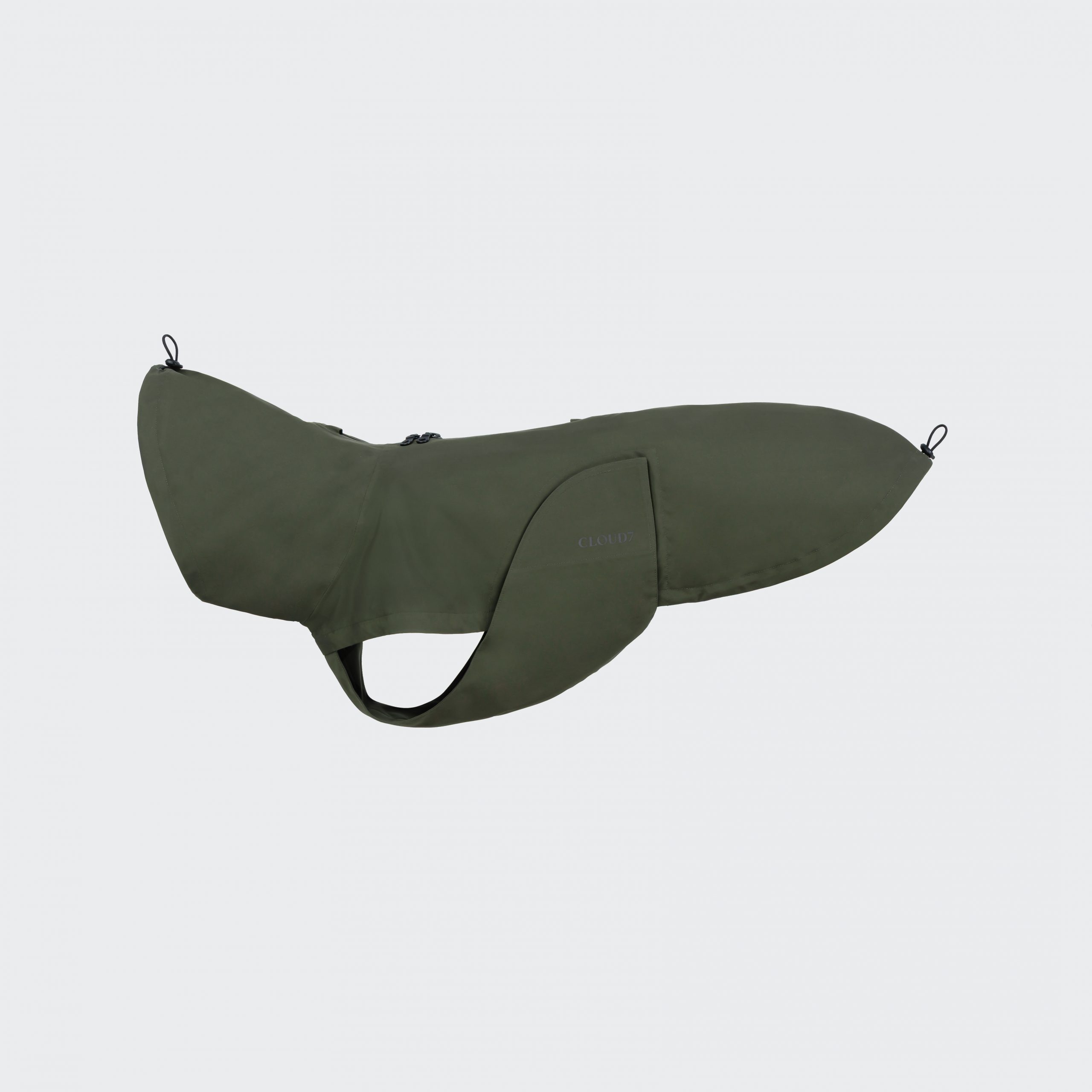 Der Hunderegenmantel Dublin 2.0 Dark Olive von Cloud7 bietet optimalen Schutz vor Regen und Wind mit einem unvergleichlichen Stil. Dieser funktionale, leichte Mantel wurde speziell für Hunde entwickelt, die bei jedem Wetter draußen unterwegs sind. Dank seines modernen, sportlichen Designs in elegantem Dunkeloliv fügt er sich perfekt in den urbanen Alltag ein und sorgt zugleich für höchsten Tragekomfort.