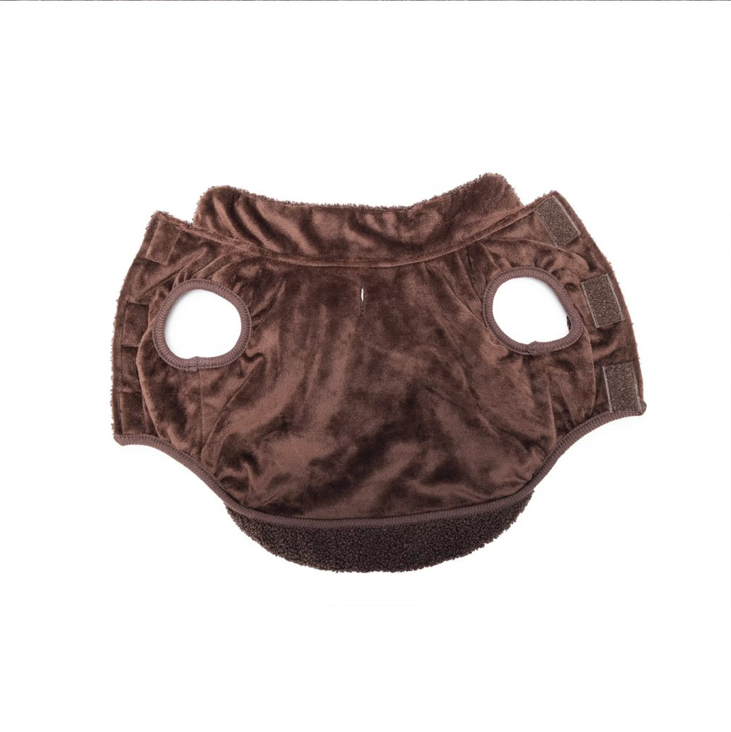 Der elegante Braunton wirkt klassisch und harmoniert mit vielen Fellfarben. Dadurch sieht dein Hund stilvoll und dezent zugleich aus. Der Pullover überzeugt zudem durch seine langlebige Verarbeitung, sodass du ihn regelmäßig einsetzen kannst, ohne dass die Qualität leidet. Du kannst ihn leicht reinigen und wieder verwenden, ideal für den Alltag bei Nässe oder Schnee.