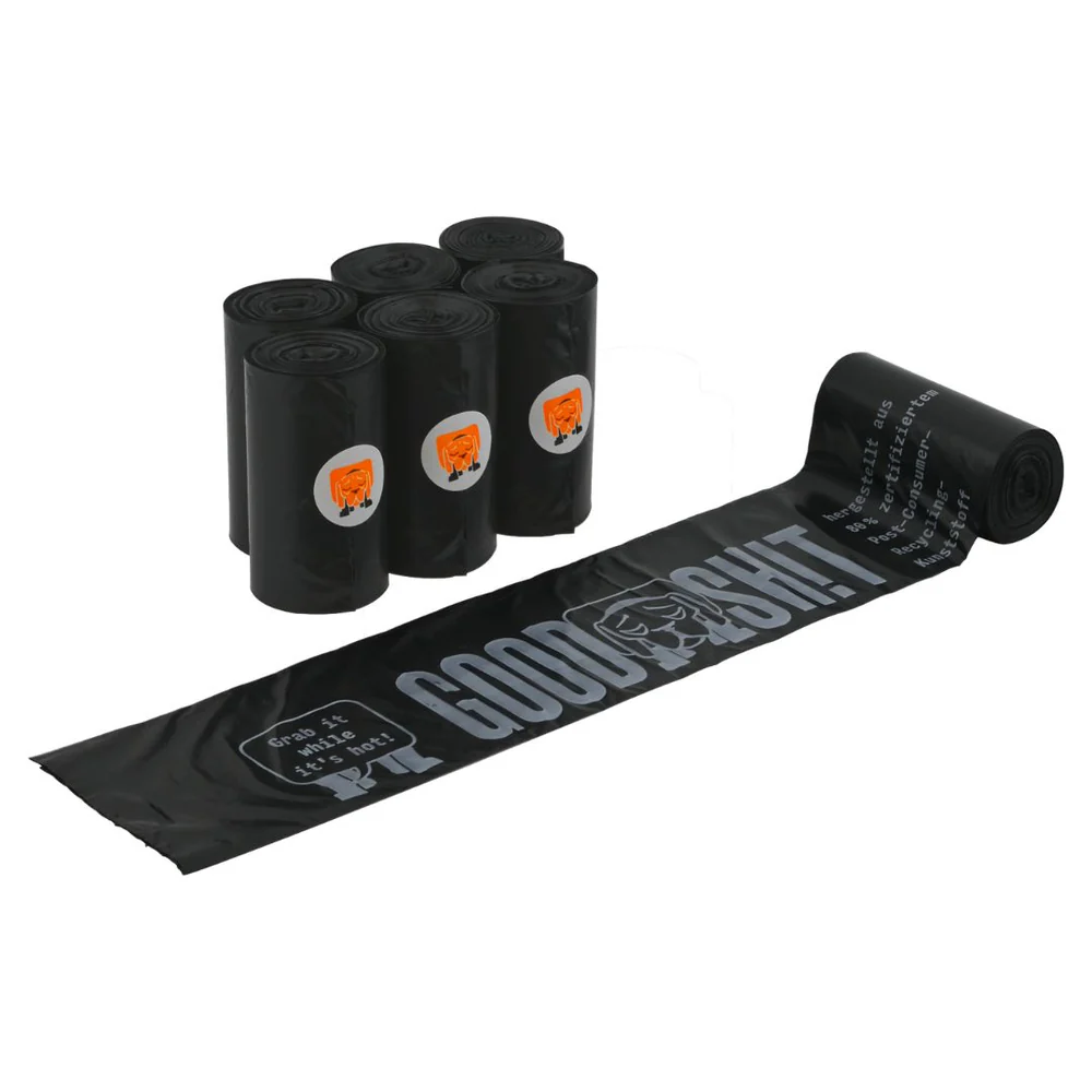 Die GOOD SHIT Kotbeutel bringen stabile Beutel in Reisegröße in dein Leben. Das Material besteht zu 80% aus Recycling-material (PCR-Kunststoff), so verlängerst du den Lebenszyklus bereits existierender Kunststoffe und sparst laut Hersteller deutlich CO₂ gegenüber Neuplastik. Deshalb tragen die Beutel den Namen GOOD SHIT – sie vereinen Humor, Stil und echten Umweltnutzen.