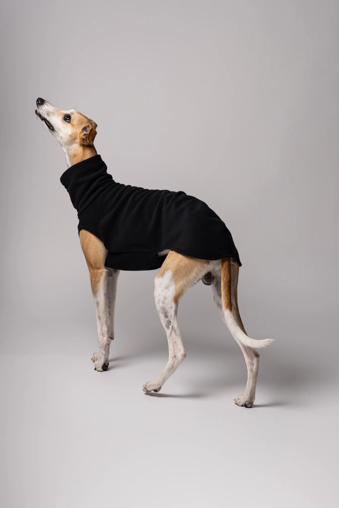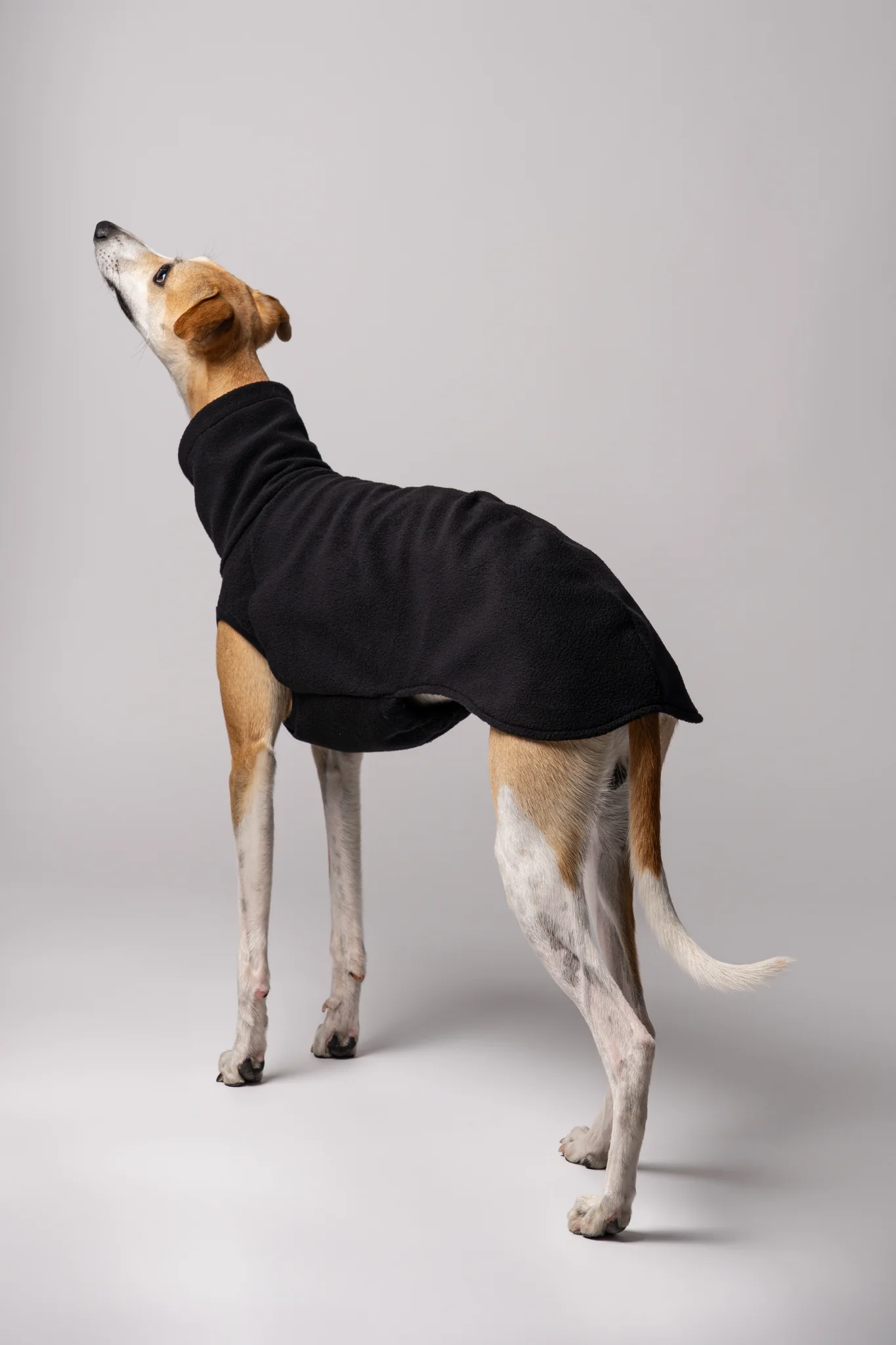 Gefertigt aus hochwertigem Polar-Fleece (100 % Polyester) überzeugt das Long Shirt durch seine angenehm weiche, anschmiegsame Struktur. Das Material hält wohlig warm, ist gleichzeitig atmungsaktiv und leicht. Es ist also ideal für sensible Windhunde, die auf Temperaturunterschiede empfindlich reagieren. Der durchdachte Schnitt mit verlängertem Rücken sorgt dafür, dass die empfindliche Lendengegend deines Hundes geschützt bleibt. Elastische Bündchen am Bauch, an Hals und Beinen garantieren eine optimale Passform, ohne die Bewegungsfreiheit einzuschränken. So sitzt das Shirt perfekt – ob beim Laufen, Toben oder Ruhen.
