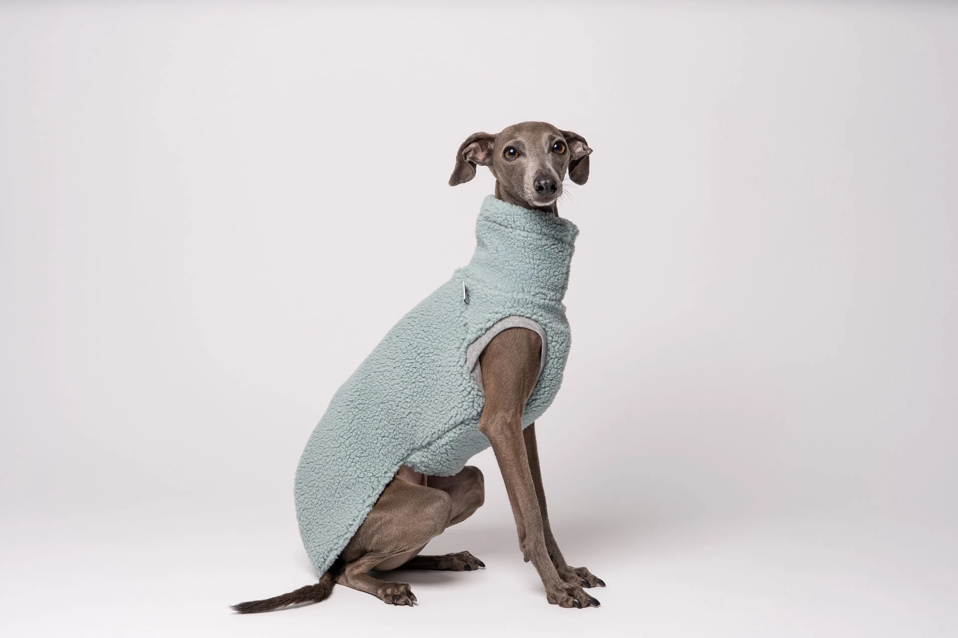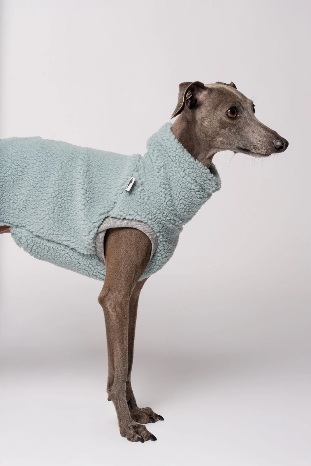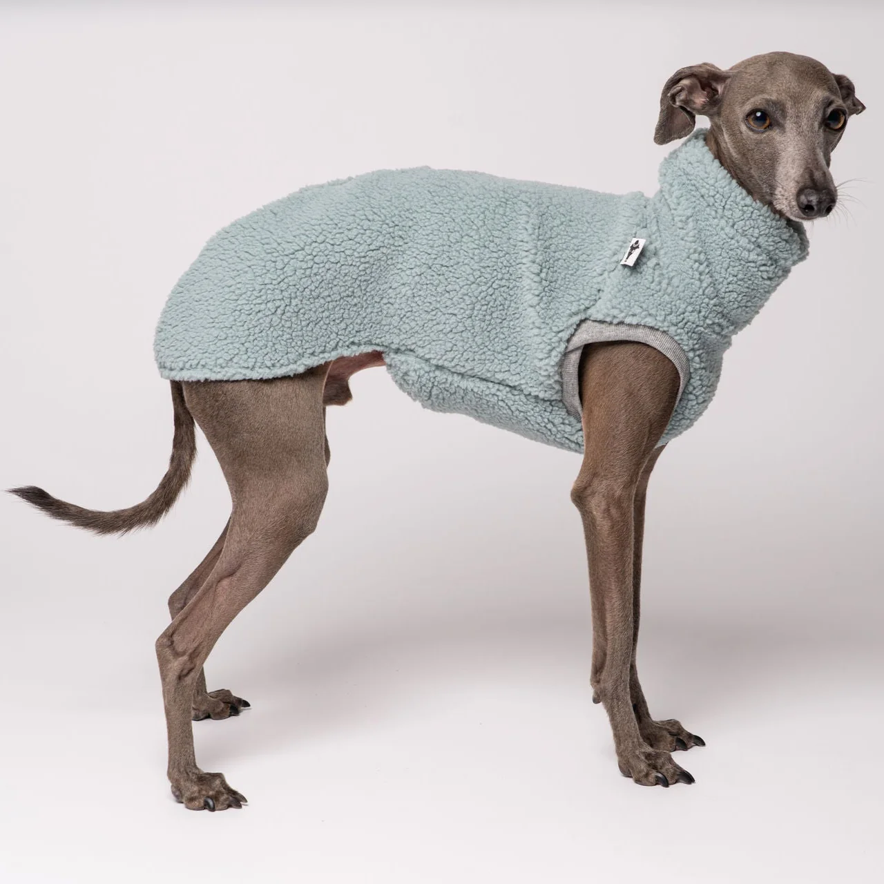 Gefertigt aus hochwertigem Teddy-Fleece (100 % Polyester) überzeugt das Shirt durch seine außergewöhnlich weiche Haptik. Das Material ist leicht, wärmend und anschmiegsam, sodass es dem sensiblen Windspiel ein kuscheliges Tragegefühl bietet, ohne zu beschweren. Der sorgfältig entwickelte Schnitt orientiert sich an der grazilen Körperform der Rasse: Der verlängerte Rücken sorgt für optimalen Schutz der empfindlichen Lendengegend, während der elastische Bauchbund und die weichen Abschlüsse an Hals und Beinen für perfekten Halt und höchsten Komfort sorgen.