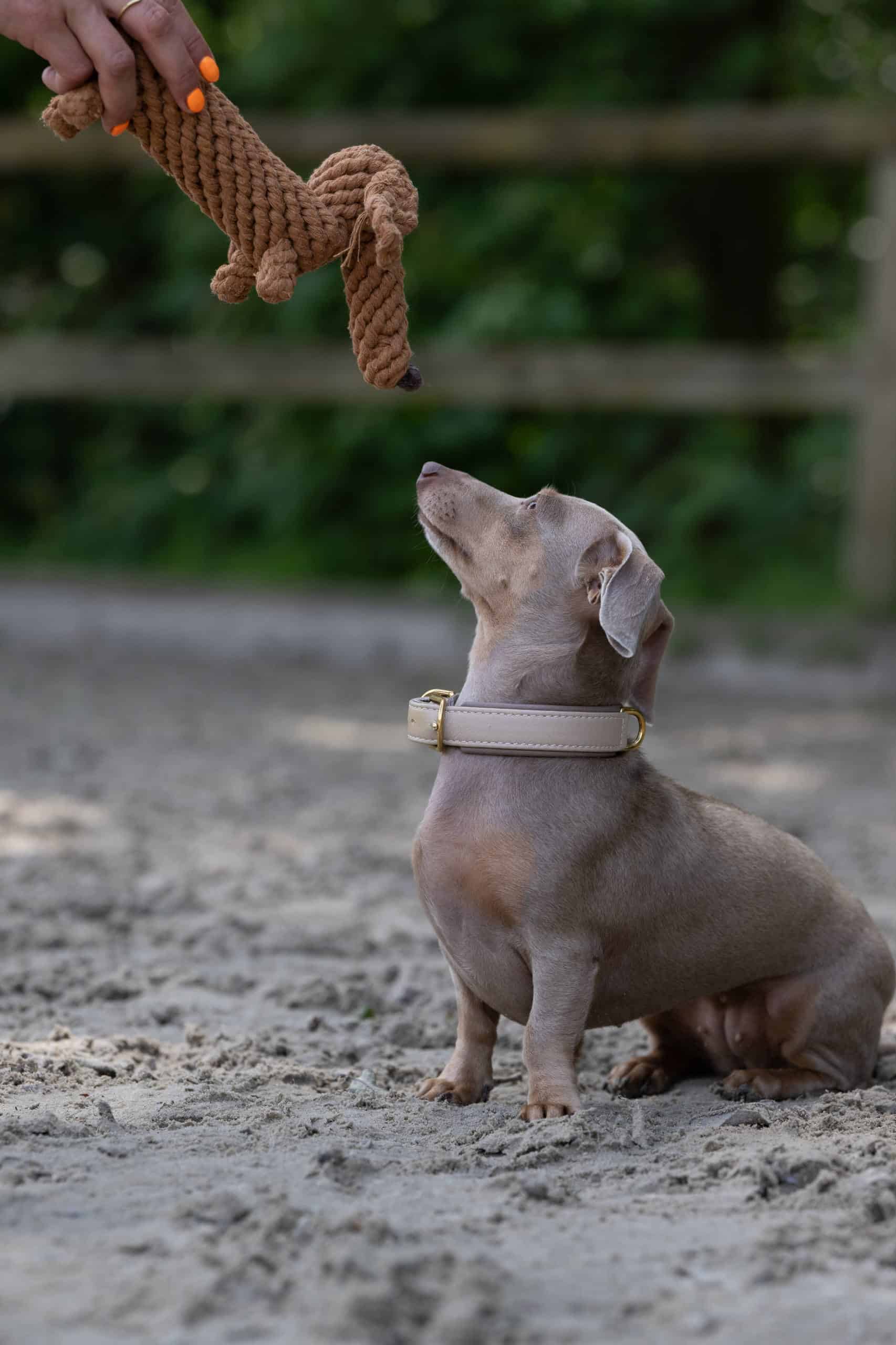 Der Laboni Diego Dackel ist nicht nur optisch ein Highlight, sondern auch funktional durchdacht. Das handgeknüpfte Baumwolltau ist besonders bissfest, daher ideal für ausgiebige Kausessions. Zudem reinigt das Material beim Kauen die Zähne deines Hundes auf natürliche Weise. Es ist frei von schädlichen Stoffen, somit auch für sensible oder allergieanfällige Hunde geeignet. Außerdem ist es leicht und damit auch für Welpen oder Senioren angenehm zu tragen.