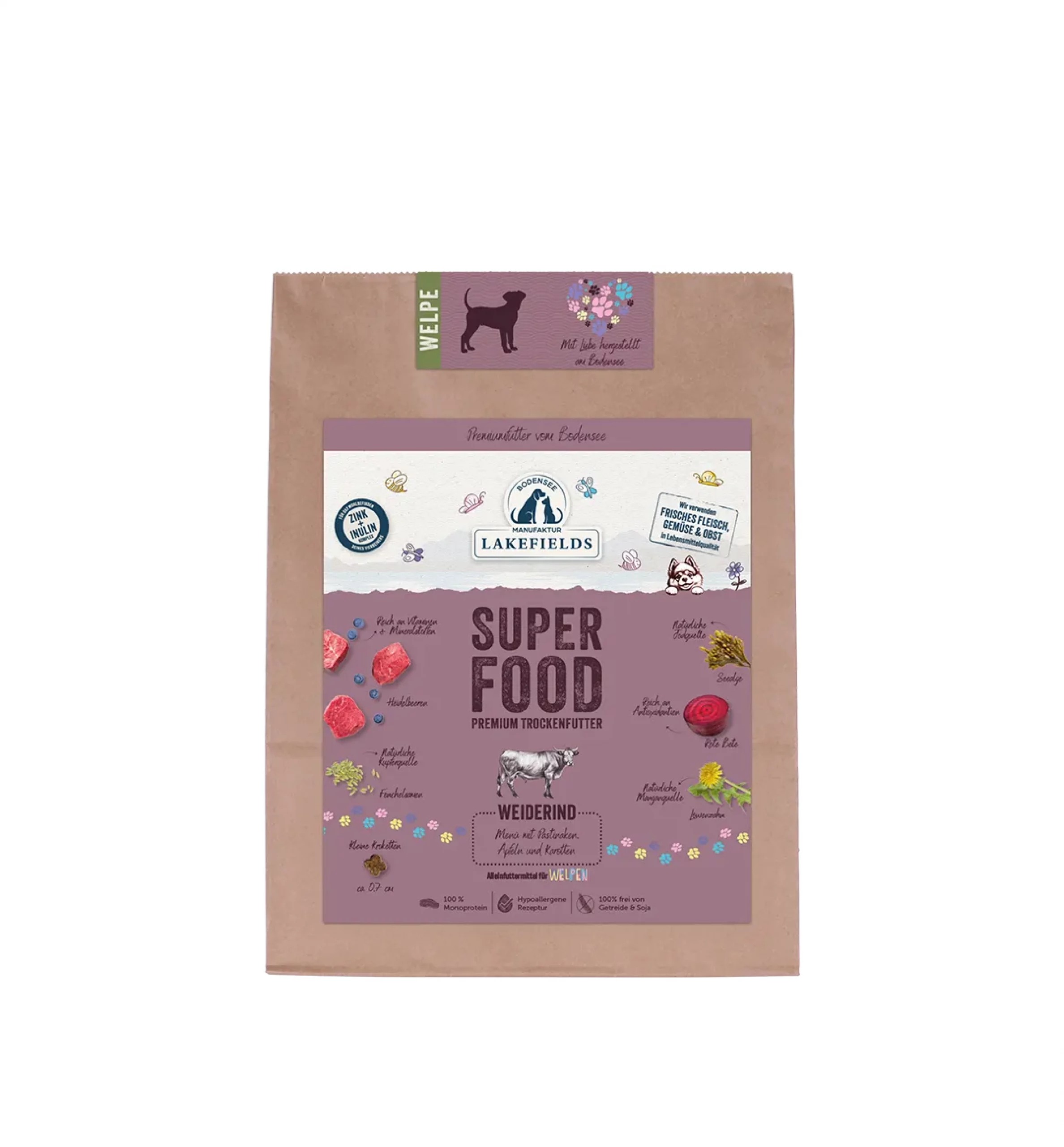 Das hochwertige und naturbelassende Hundefutter von Lakefields wird aus regionalen Zutaten am Bodensee hergestellt. Dabei verzichtet die Manufaktur auf den Zusatz von künstlichen und minderwertigen Inhaltsstoffen, sodass Deinen Liebling ein vollwertiges und gesundes Futter erwartet, welches zudem getreidefrei ist. Das Fleisch stammt aus artgerechter Tierhaltung. Für den erhöhten Proteinbedarf von Welpen, gibt es zudem spezielles Futter, welches auf heranwachsende Hunde ausgerichtet ist. Auch Futter extra für kleine Hunde ist im Sortiment erhalten. Trockenfutter und Leckerlis stellen die Lakefields Manufaktur mittels Steinöfen her, wodurch die Produktion besonders schonend und nährstofferhaltend erfolgt. Zum Testen haben wir kleine Verpackungseinheiten vor Ort, sodass sich Dein Vierbeiner durch die Produktpalette probieren und seinen persönlichen Favoriten bestimmen kann.