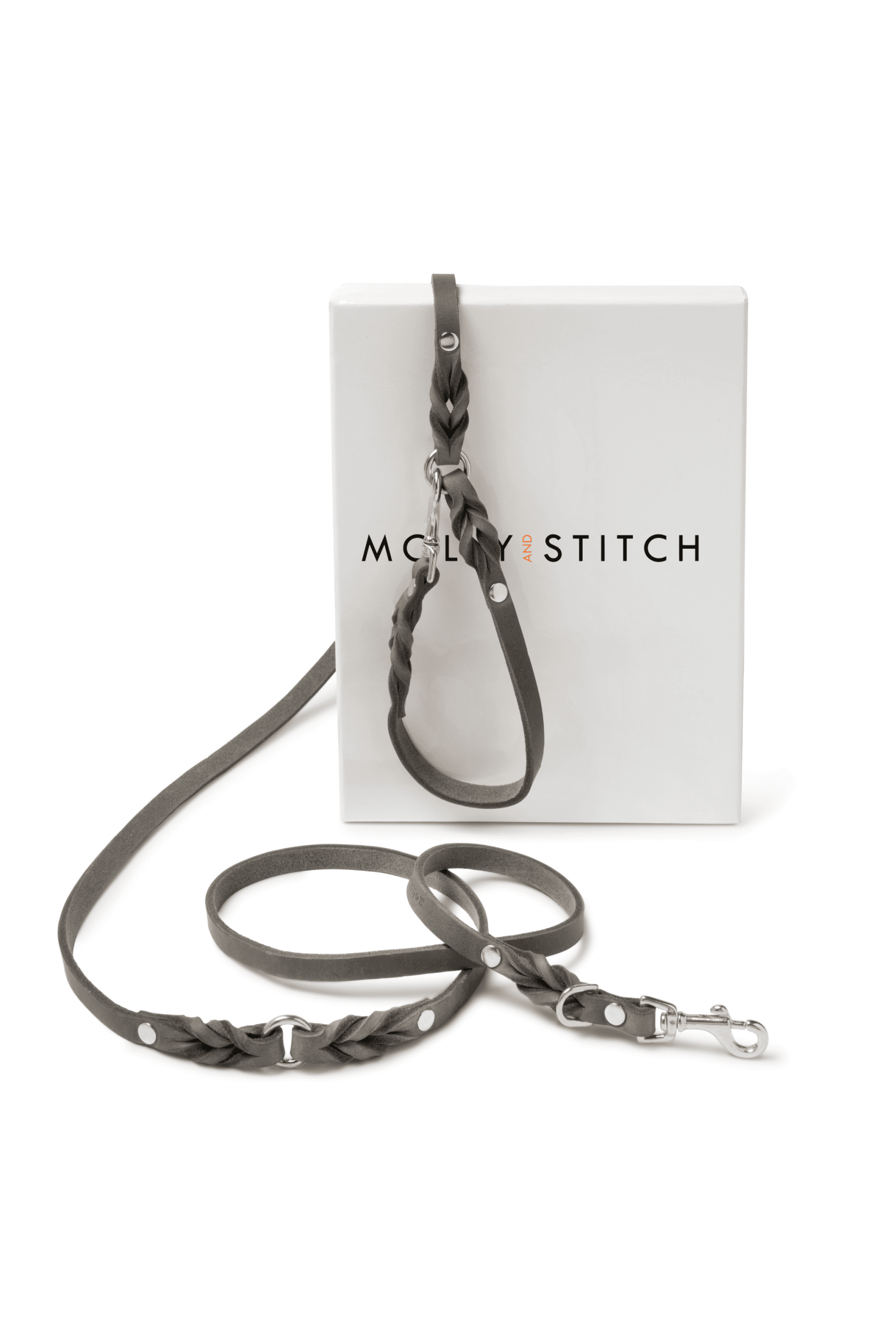 Die hochwertige Hundeleine 3x verstellbar Zeitloses Grau von Molly and Stitch überzeugt durch ihren eleganten Stil und ihre gleichbleibend hohe Qualität. Es wird feinstes Fettleder verwendet, welches ein reines Naturprodukt ist, sodass jede Leine ihren eigenen Charakter aufweist. Das Material der Leine ist so geschmeidig wie Butter und liegt perfekt in der Hand. Die Länge kann durch die dreifache Verstellung individuell angepasst werden. So kann sie je nach Bedarf in der Hand gehalten oder auch umgehängt werden. Die maximale Länge beträgt 2m. Die Lederleinen mit dem eleganten Design werden handgeflochten in Österreich hergestellt.