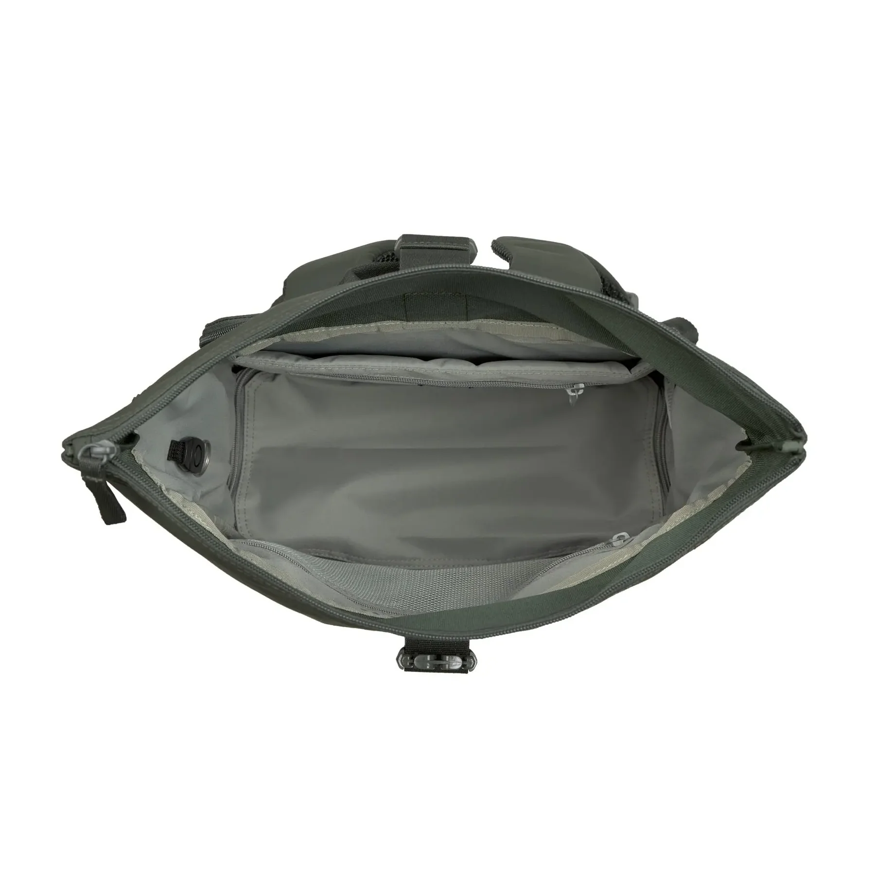 Ein besonderes Highlight ist die clevere Innenaufteilung: Ein abwischbares Bodenfach für Hundezubehör ist per Reißverschluss vom Hauptfach getrennt, sodass Hundesachen hygienisch getrennt von persönlichen Gegenständen transportiert werden können. Die flexible Rolltop-Öffnung ermöglicht schnellen Zugriff und eine variable Anpassung des Stauraums.