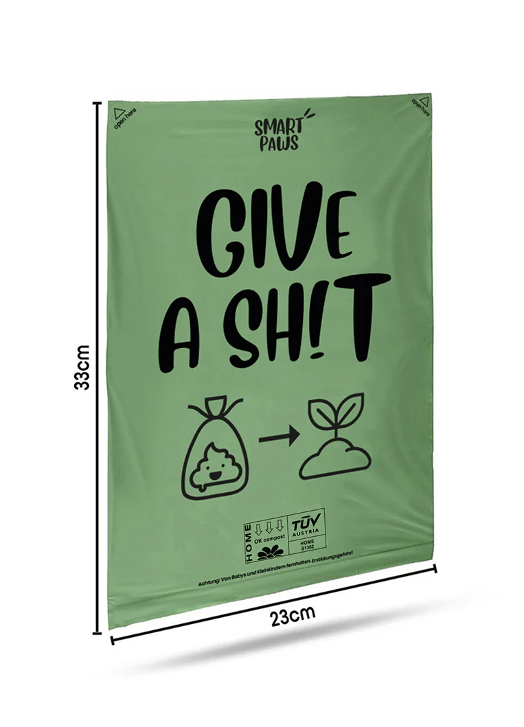 Die Smart Paws Kotbeutel bestehen zu 100% aus Maisstärke, die vom TÜV Austria mit dem Siegel „OK compost HOME“ ausgezeichnet wurde. Damit zersetzen sich die Tüten selbst auf dem heimischen Kompost binnen etwa 180-365 Tagen komplett zu Wasser, CO₂ und Biomasse – ohne Mikroplastik oder Giftstoffe zurückzulassen.